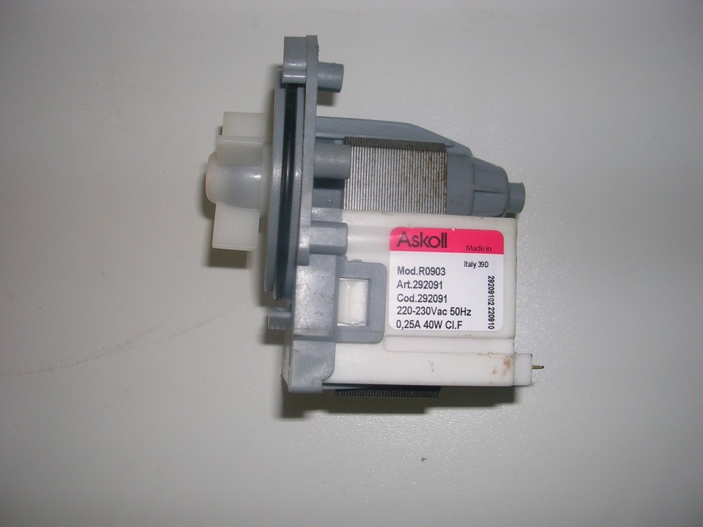 Сливной насос Askoll R0903,подходит к стиральным машинам Zanussi, Elektrolux, Bosch. Поставляется без улитки с креплением на 3-х клипсах(защелках), клеммы раздельно,назад.